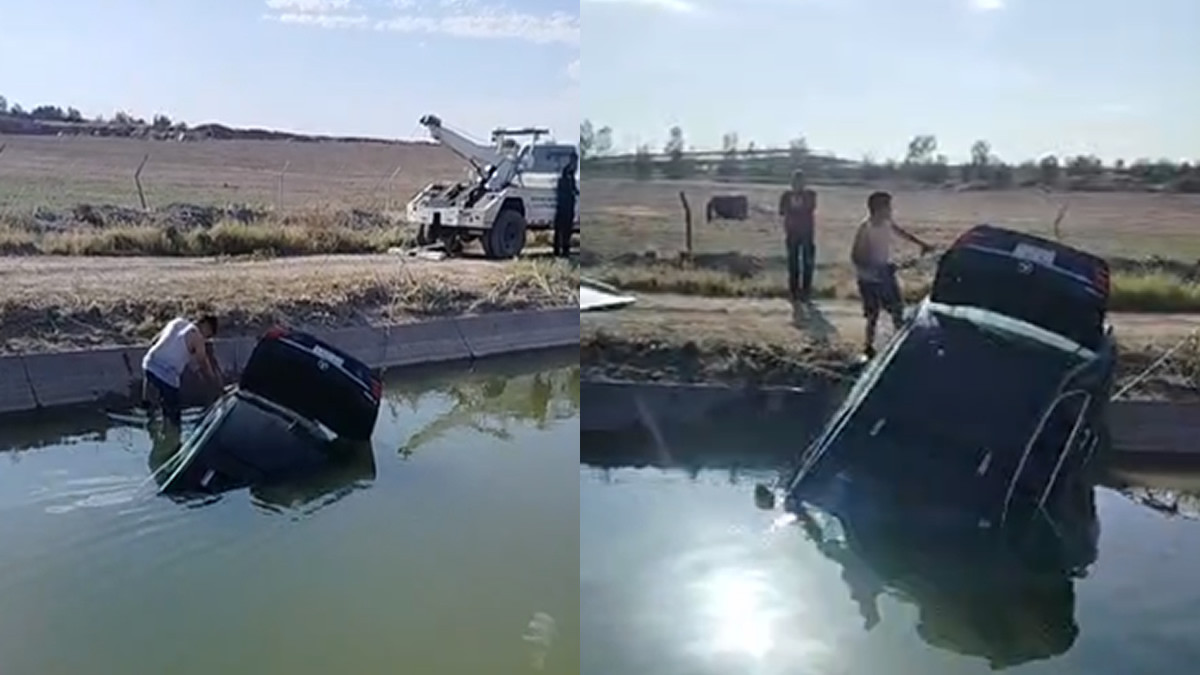 Delicias.- Un automóvil de lujo terminó sumergido en un canal de riego la tarde de este domingo en el trayecto que comunica a la colonia Santa Fe con Las Virginias. El vehículo, un Mercedes-Benz E Sedán modelo 2014, sufrió daños estructurales y mecánicos de consideración tras la salida de camino, lo que llevó a las autoridades a catalogar la unidad como pérdida total.