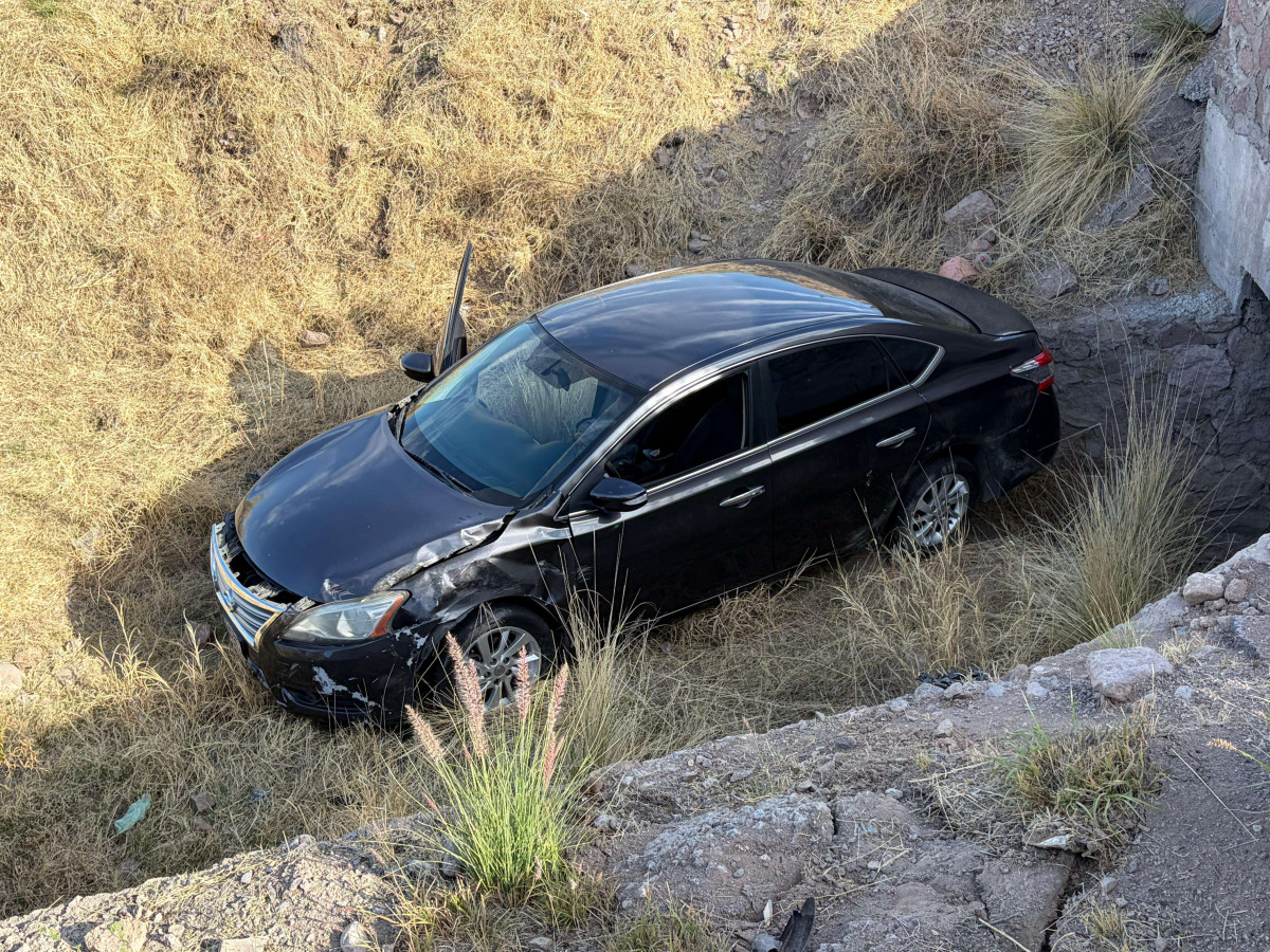 Chihuahua.- Una joven conductora resultó ilesa la mañana de este miércoles tras perder el control de su automóvil y caer al interior de un arroyo pluvial en la zona norte de la ciudad de Chihuahua. El accidente, que dejó cuantiosos daños materiales, ocurrió sobre la avenida Los Nogales, a la altura del fraccionamiento Quinta Sebastián.
