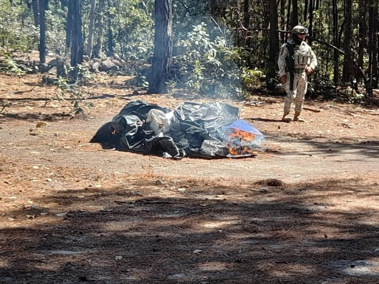 Destrucción total: Tras realizar un rastreo perimetral sin localizar a personas responsables, los elementos procedieron a la quema y destrucción de las estructuras improvisadas para evitar su reutilización.
