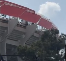 Durante la tarde de este domingo, diversos reportes ciudadanos y asistentes a las inmediaciones del estadio del ITESM evidenciaron que el material textil no resistió el embate del clima.