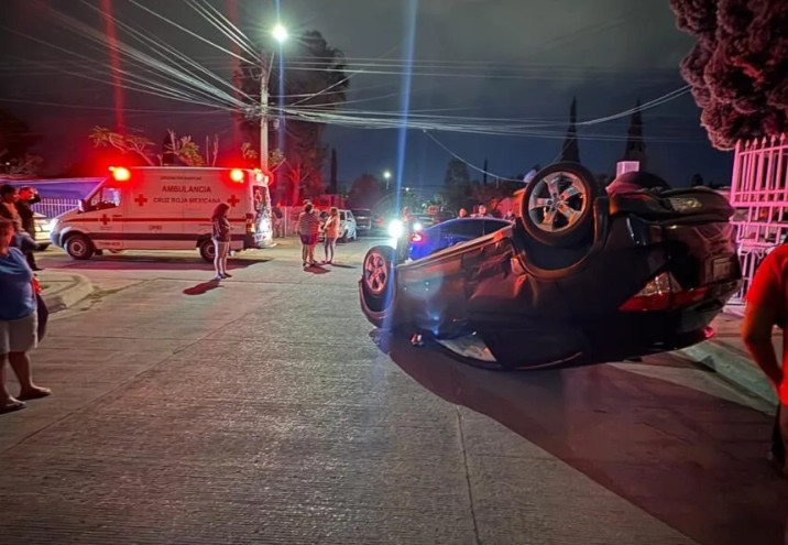 El impacto: Un automóvil Dodge Dart en color azul, que transitaba con preferencia, impactó el costado de la camioneta, provocando que esta terminara volcada sobre la vía.