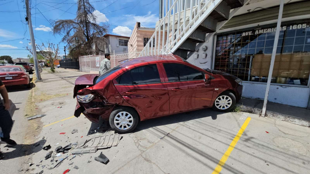 Pérdida total: Debido a la fuerza del choque, el Aveo fue proyectado contra unas escaleras, resultando con daños estructurales irreparables.