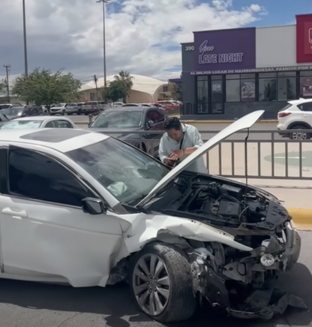 Chihuahua.- Un aparatoso choque entre dos automóviles particulares se registró la tarde de este domingo en la intersección de la avenida Ortiz Mena y calle Carbonel, dejando como saldo cuantiosos daños materiales y la obstrucción parcial de la lateral. El accidente fue provocado por un corte de circulación que derivó en la proyección de una de las unidades contra un poste de servicios públicos.