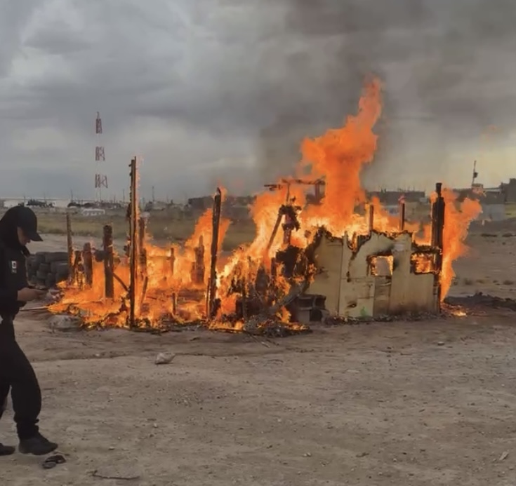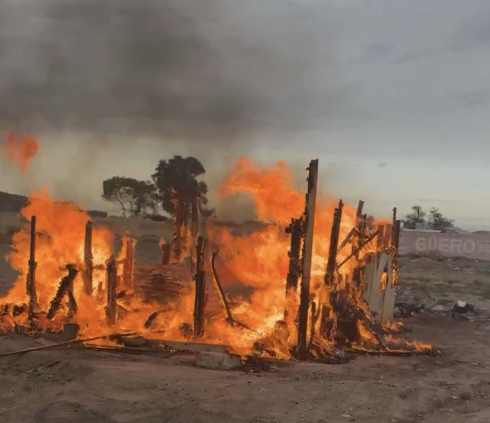 CIUDAD JUÁREZ, CHIH. — Un siniestro registrado a temprana hora de este sábado redujo a cenizas una oficina en construcción ubicada en las inmediaciones de la colonia Praderas del Sol. El incidente movilizó a los cuerpos de emergencia, reportándose únicamente daños materiales totales.