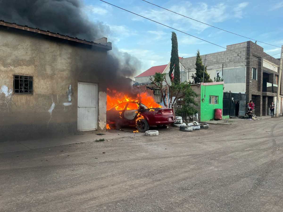 El incendio: Tras la agresión al inmueble, el sujeto presuntamente prendió fuego a un vehículo Dodge Stratus, modelo 2001, el cual fue envuelto por las llamas en cuestión de minutos.