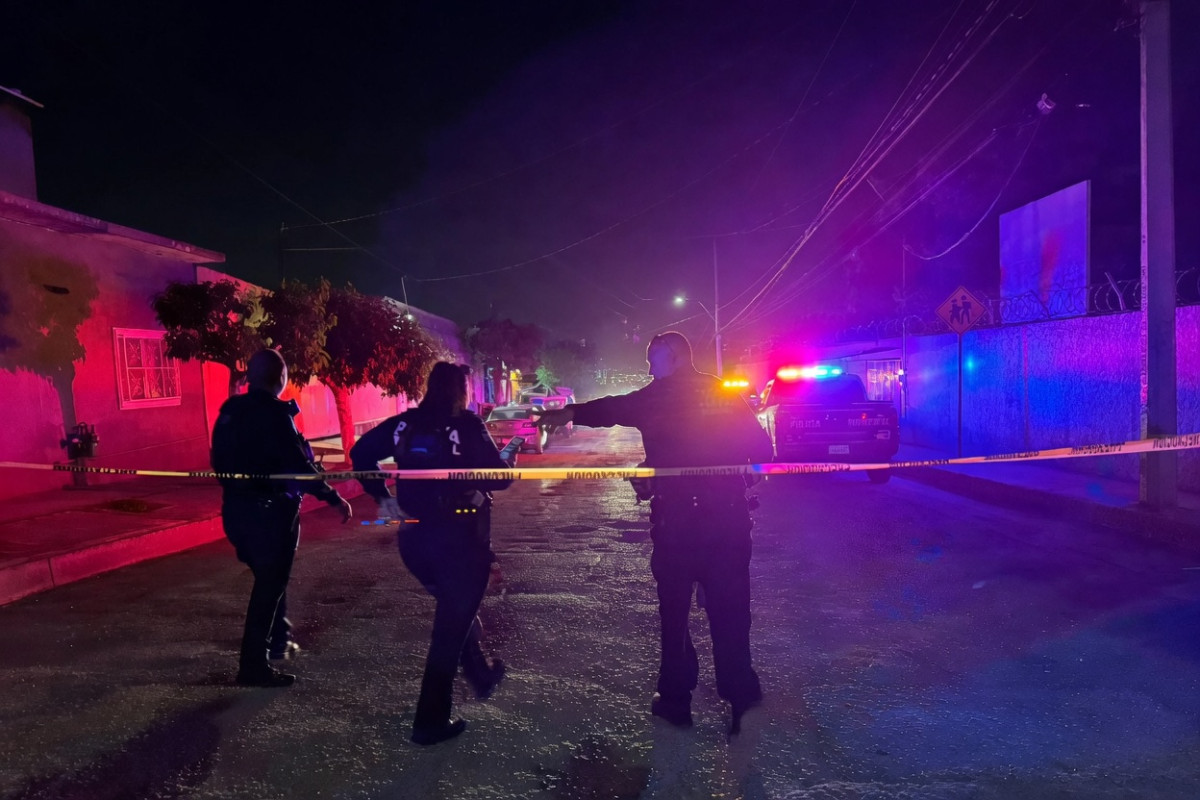 Resguardo de la escena: La Policía Municipal acordonó el taller mecánico mientras peritos de la Fiscalía General del Estado (FGE) recolectaban casquillos percutidos y otras evidencias.