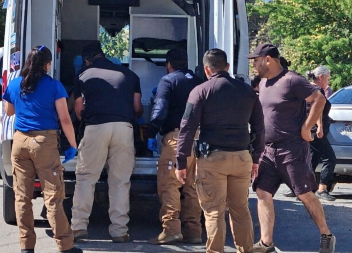 Atención Médica: Paramédicos de URGE arribaron al sitio para estabilizar al hombre de 40 años, procediendo a su traslado a un hospital para una valoración quirúrgica debido a la lesión producida por el arma blanca.
