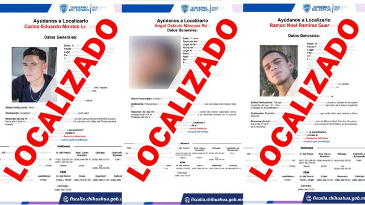 Chihuahua.- La Fiscalía General del Estado (FGE) de Chihuahua confirmó la localización con vida de tres personas que contaban con reporte de ausencia en la capital del estado. Tras la activación de los protocolos de búsqueda por parte de la Unidad de Investigación de Personas Ausentes y/o No Localizadas, se logró ubicar a los ciudadanos, quienes se encuentran en buen estado de salud física y mental.