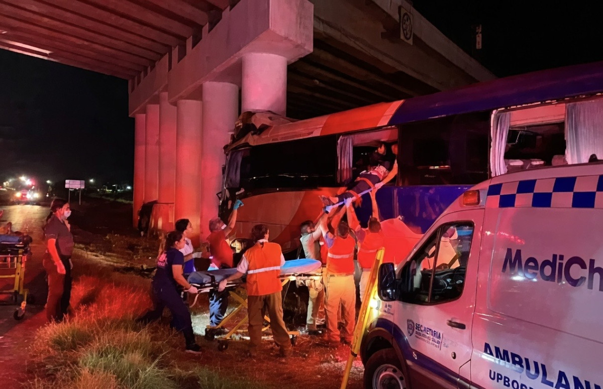 CHIHUAHUA, Chih. – Una madrugada trágica se registró este jueves en la carretera Delicias-Chihuahua, donde un autobús de pasajeros que transportaba pacientes del IMSS se impactó contra la base de un puente, dejando un saldo de cuatro personas fallecidas y al menos cinco heridos de gravedad.