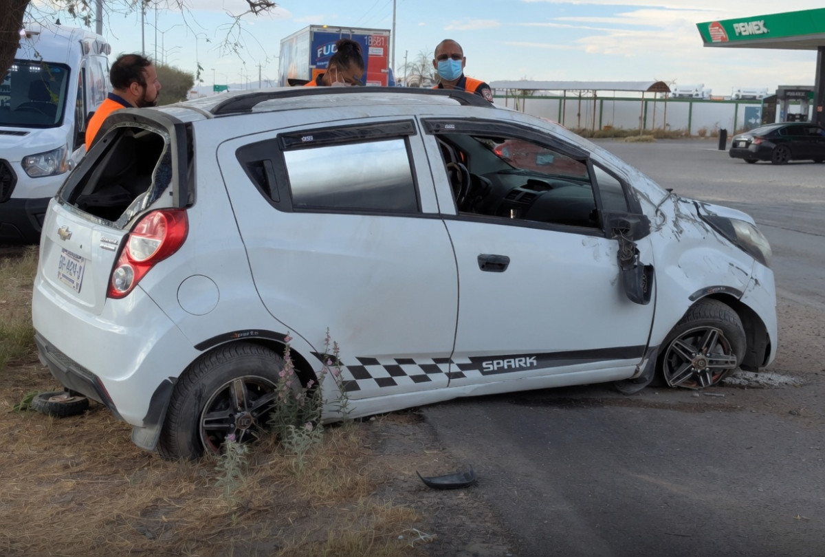 Chihuahua.- Un aparatoso accidente se registró la tarde de este domingo sobre el Periférico Lombardo Toledano, donde el conductor de un vehículo compacto perdió el control y volcó de manera espectacular. A pesar de que la unidad dio un giro completo tras salir de la cinta asfáltica, el guiador logró sobrevivir al impacto presentando únicamente lesiones menores que no requirieron hospitalización.