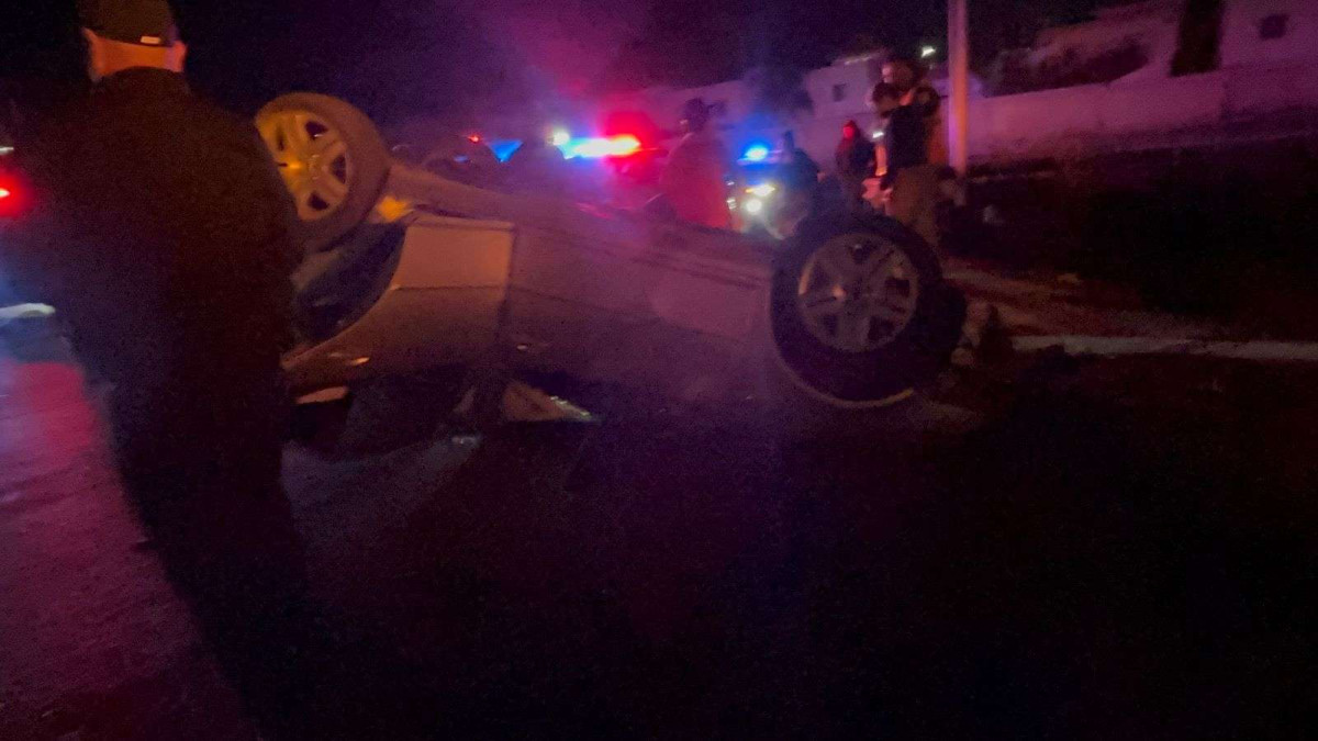 Chihuahua, Chih. — Cuatro jóvenes resultaron con lesiones leves tras sufrir una volcadura la noche de este viernes en el cruce de la avenida Teófilo Borunda y el Periférico de la Juventud. El incidente ocurrió cuando el vehículo en el que se trasladaban impactó inicialmente contra una barrera de protección, lo que provocó que la unidad saliera proyectada y terminara con las llantas hacia arriba sobre la cinta asfáltica.