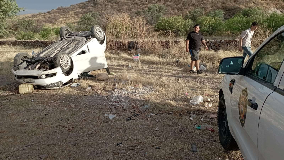 Chihuahua.- Un fuerte accidente vial se registró a la altura del kilómetro 4 de la carretera libre Chihuahua-Ciudad Juárez, donde un vehículo compacto terminó con las llantas hacia arriba tras una maniobra fallida. Los cuatro tripulantes, todos hombres jóvenes, circulaban en sentido norte a sur a bordo de un automóvil Volkswagen cuando el conductor perdió el control de la unidad. El vehículo salió de la cinta asfáltica, impactó contra un montículo de arena que sirvió como rampa y finalmente volcó, quedando la unidad severamente dañada. Testigos del percance solicitaron auxilio inmediato a través del 9-1-1, activando el protocolo de rescate en este Sábado de Gloria.